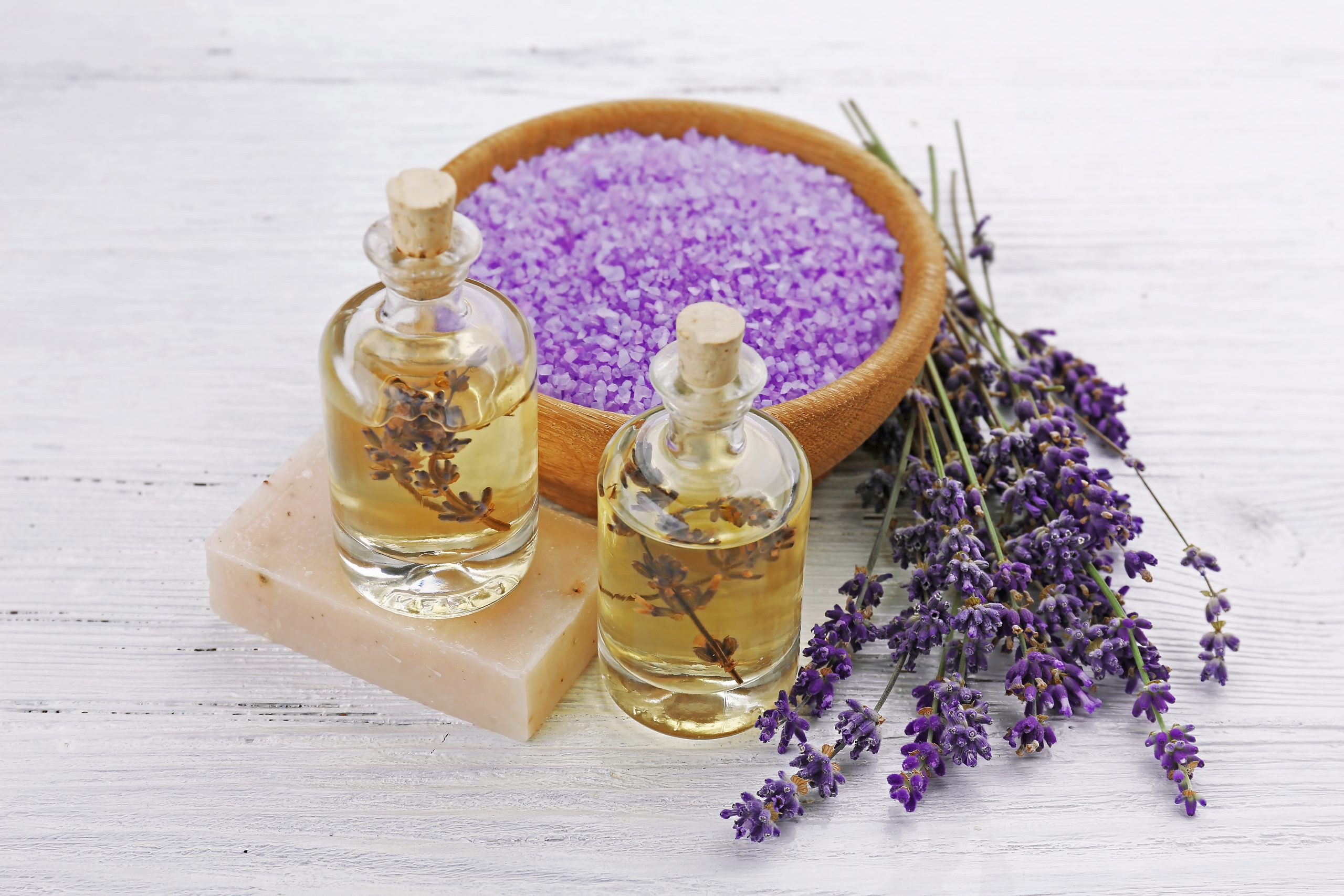 Spa composition with lavender essential oils, closeup Spa composition with lavender essential oils, closeup